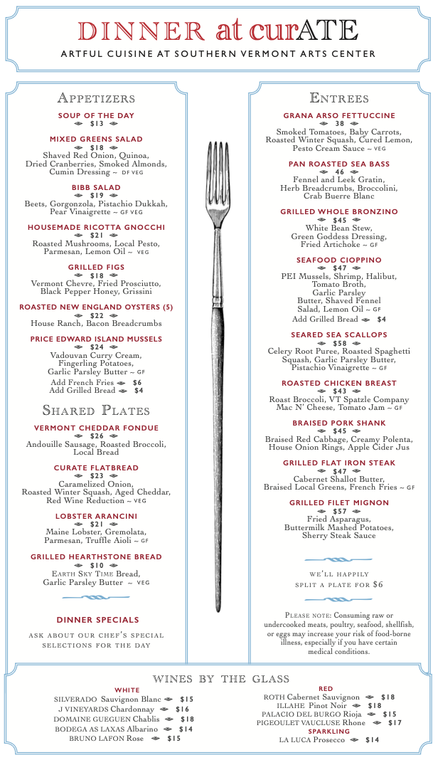 Southern Vermont Arts Center offers lunch, brunch and dinner in curATE café.