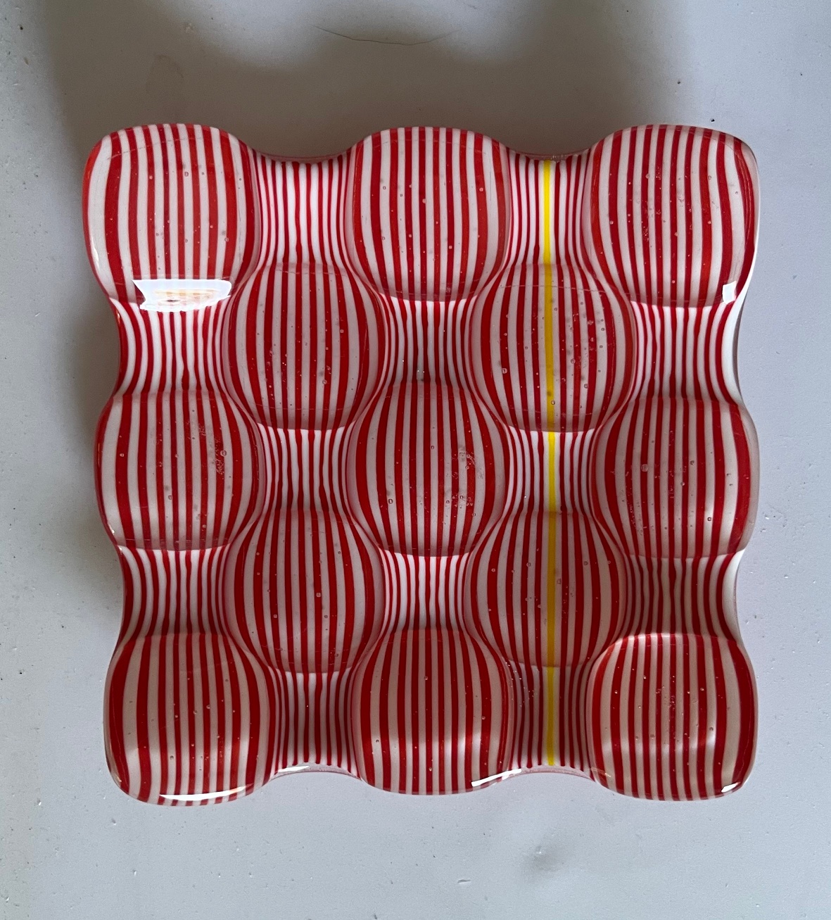 After the workshop, Stacy will fire the piece two times in her glass kiln to fully fuse and shape the plate.