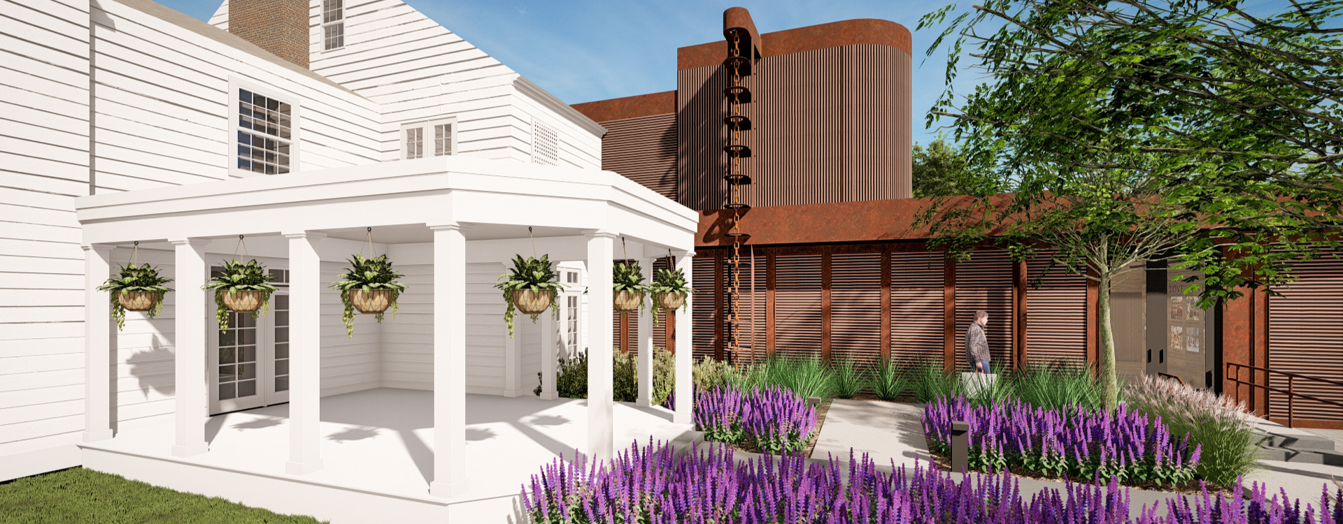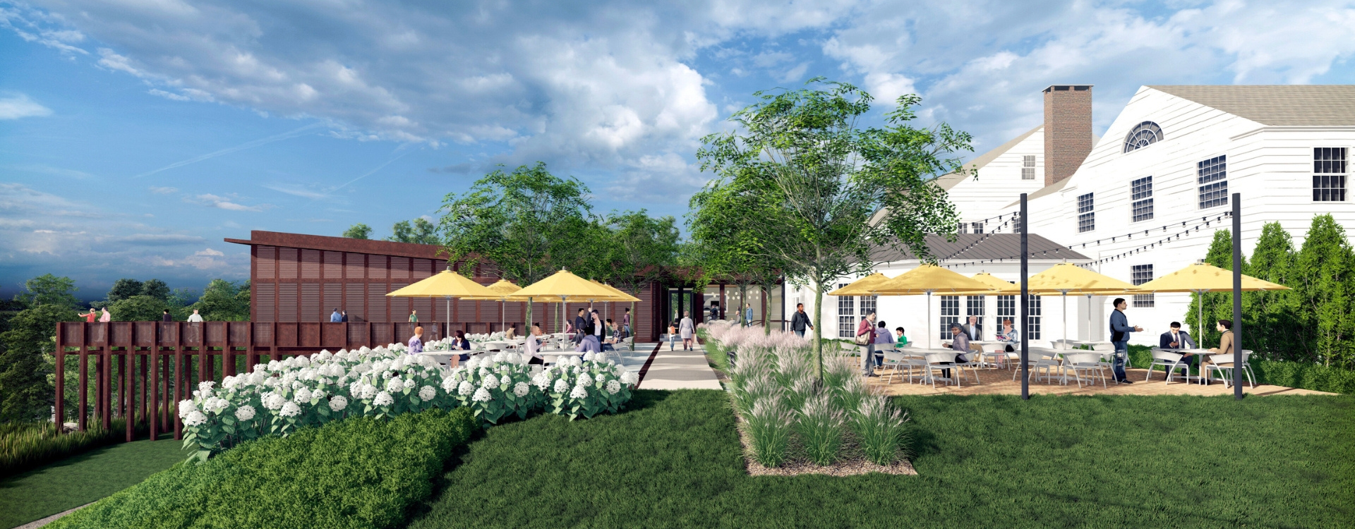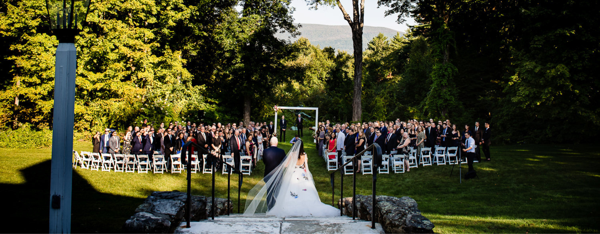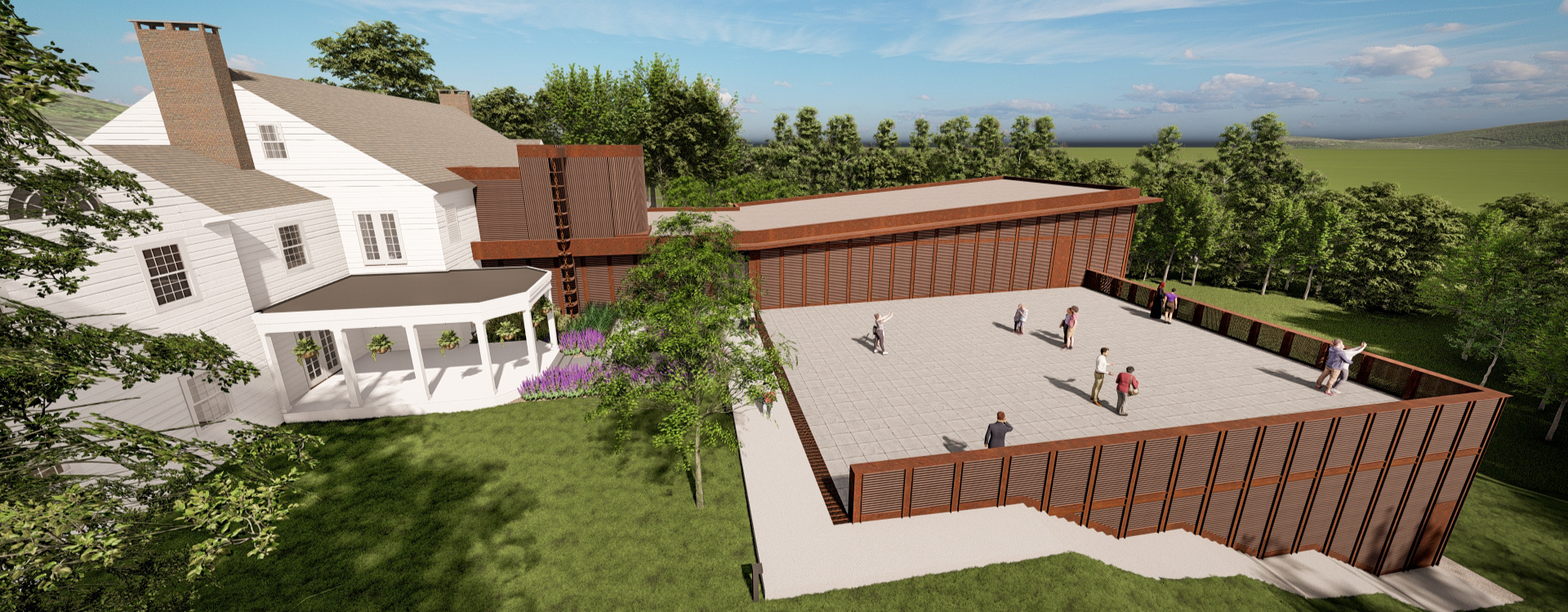 The expansive back lawn often serves as the location for tented events for clients wishing to host guests in one large area.